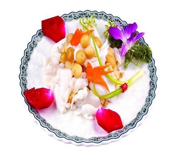 制作步驟:1. 將腌制好的鮮貝入水至五成熟,下入切好的西芹段;待鮮貝八成熟時(shí),一同撈起倒入漏勺,瀝干水分。2. 熱鍋,倒入花生油燒至五成熱,之后將夏威夷果仁倒入鍋中,拉油出香,再下入鮮貝和西芹段,一起拉油后倒入漏勺瀝凈油。3. 將鹽、味精、白糖、胡椒粉、濕淀粉、香油、上湯兌成碗汁。4. 開(kāi)火,將草菇片、小蔥段、胡蘿卜花倒入鍋中余油略煸,之后倒入鮮貝、西芹段和調(diào)好的碗汁,旺火翻炒爆勻,最后淋入雞油出鍋入盤(pán)即可。