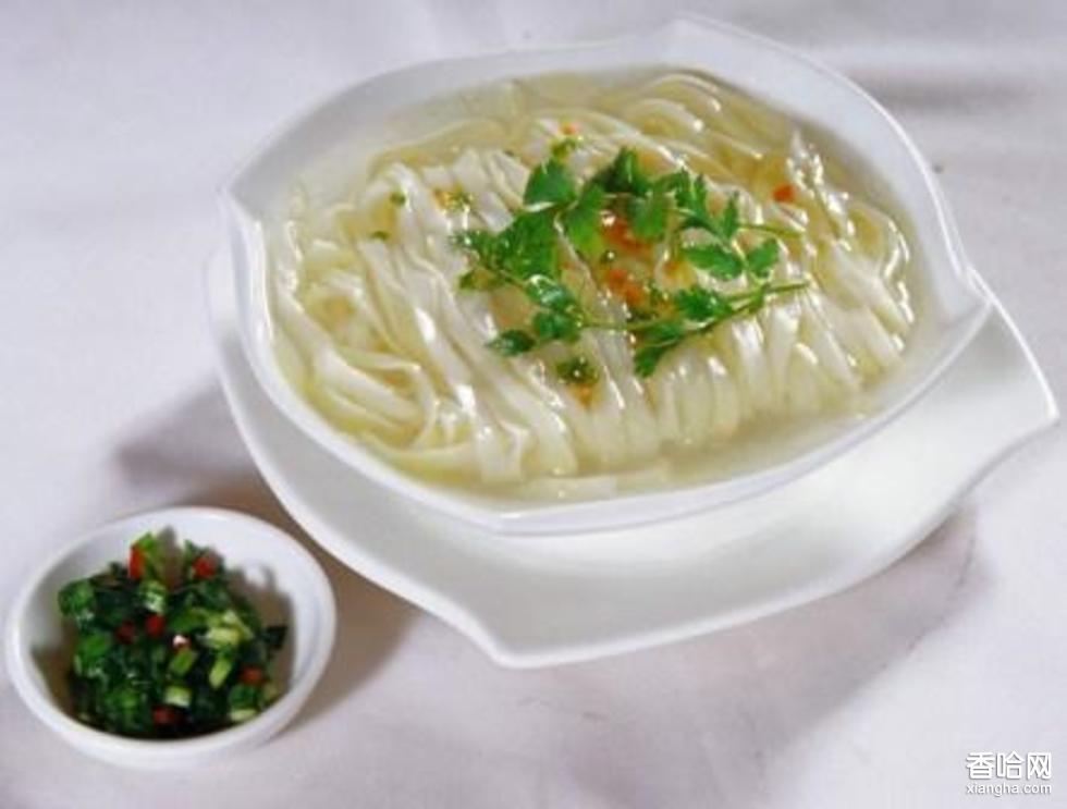 漿水面是漿水作湯,加上蔥花、香菜等制作的一種面條。天水城鄉(xiāng)人民十分喜歡吃漿水面。漿水面有清熱解暑、治療疾病之功效,可單獨(dú)作飲料。在炎熱的暑夏,喝上一碗漿水,會使人感到清涼爽快,又能解除疲勞,恢復(fù)體力。
