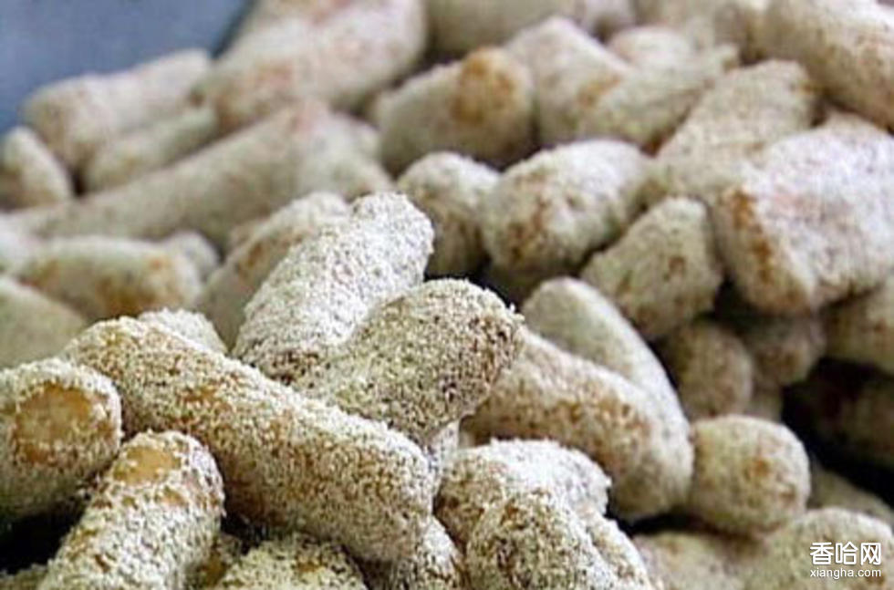 其加工工序,經(jīng)選料、淘洗、浸泡、磨粉、蒸料,和面、搟片、搓條、制坯、陰干、貯存、發(fā)坯、油浸、炸制、澆漿、掛皮等24道工序制成。一般冬季制坯,四季加工成品。從投料到出成品需要半年時(shí)間。成品呈圓柱體,個(gè)大體松,皮色金黃,肉質(zhì)潔白,呈絲網(wǎng)狀,香甜酥脆,綿軟易化。