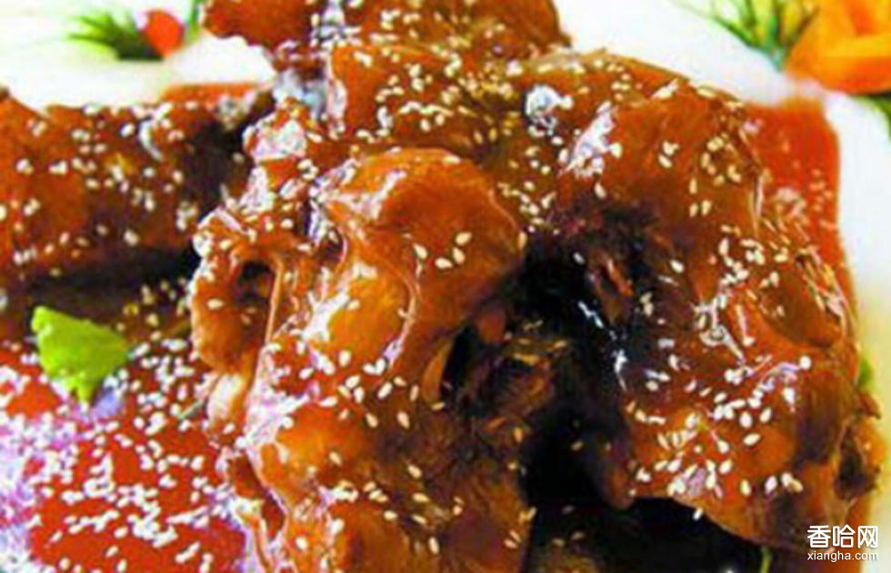 絲路駝?wù)朴置┥今務(wù)?,是一道色香味俱全的漢族名肴,屬于甘肅菜。在古代的絲綢之路上,駱駝是最主要的交通工具,它能在戈壁沙漠中長途跋涉,主要憑借那四只堅(jiān)實(shí)的駝?wù)?。由于駝?wù)迫渴墙?,其營養(yǎng)價(jià)值很高。但駱駝壽命長,一般很少宰殺,所以駝?wù)坪茈y尋覓,它與熊掌一樣名貴。