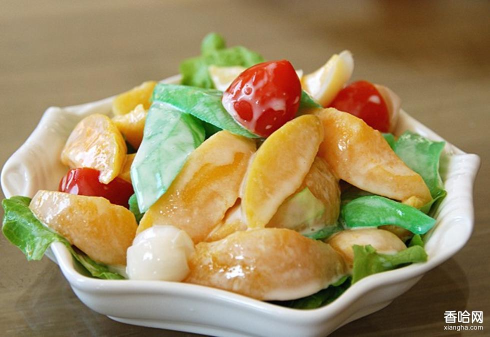 原料:鮮百合,豆沙餡,山楂糕,青梅,水淀粉,白糖。