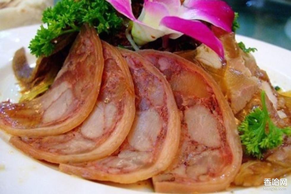 制作方法:1、將豬腿洗凈,從小蹄角上面用刀子劃開皮肉,將骨剔出(瘦肉不用取出),把瘦肉劃切成條狀,寬約3-5厘米,厚為2-4厘米,越長(zhǎng)越好。2、配料調(diào)好,與食鹽一起在瘦肉上揉搓,把球米放碗內(nèi),加白酒,點(diǎn)燃白酒,邊燒邊攪,約燒15分鐘即可。3、用牛角刀或匕首取出小蹄與腿之間的骨頭,不要?jiǎng)澠破?,把瘦肉放在里面,涂抹好調(diào)料,用線縫好刀口。從小蹄以上用筷子般粗細(xì)的繩子一道挨一道扎緊(越緊越好)。4、將捆好的卷蹄放盆內(nèi)腌2晝夜,再放沸水鍋內(nèi)煮至熟透(不要煮得太爛),撈出晾涼,解掉捆繩,拆去縫線,空處用蘿卜絲和炒大米粉(大米炒熟磨碎)填塞,放時(shí)壇內(nèi),密封壇口,15-20日后即可食用。