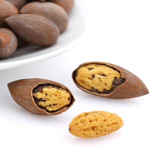 殼薄而脆,也特別好剝。香榧自然成熟后,果肉和果殼是慢慢分離的,自然特別容易剝開了的。而成熟不夠的香榧殼和肉連在一起,很難剝開的。