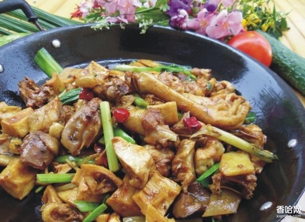 該菜系選用德昌優(yōu)質(zhì)雜交雞,配青筍、青椒、大蒜、泡姜等,先將雞放入溫油中炸熟,再加豆瓣、姜、料灑、花椒、辣椒面炒香,摻入鮮湯,加蓋密封不使其走氣,用微火燜杷。此菜色澤紅亮,雞肉杷嫩,咸鮮微辣、價廉物美。