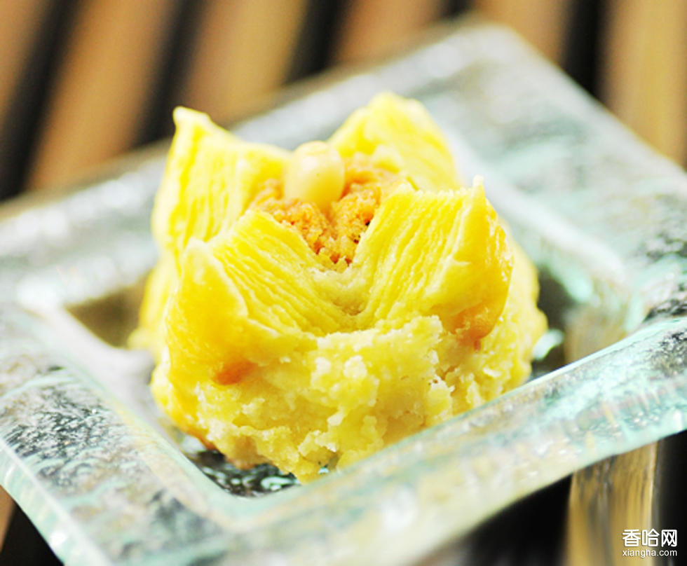 百合酥,酥點,特點:形如百合花,酥紋層次清晰,餡香甜可口。烹制法:炸。