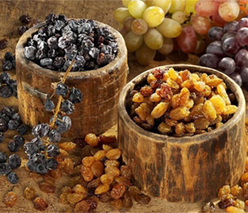 葡萄干由成熟的葡萄曬干或陰干制成,肉質軟糯酸甜,營養(yǎng)豐富。主要產于新疆、甘肅,陜西、河北、山東等地,新疆吐魯番的無核葡萄干最有名。由于葡萄干內的含水量只有15-25%,所以可以保存很久。葡萄干果糖含量很高,時間久了會產生少量結晶,這并不影響其食用。葡萄干可以直接食用,也可作為烹飪調料或放在糕點中。