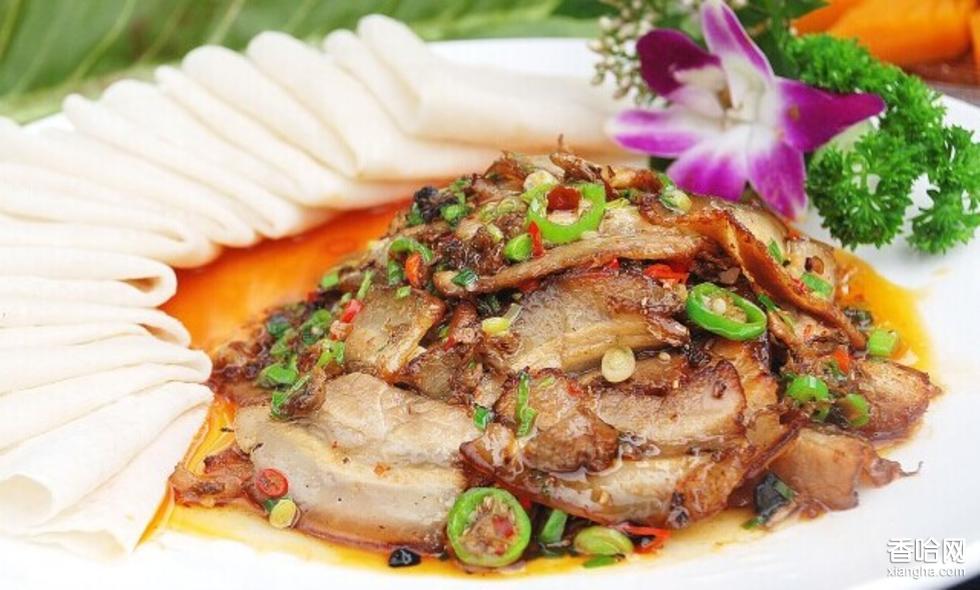酥盒回鍋肉是四川雅安的一道漢族傳統(tǒng)名菜,色澤紅亮,肉片形似燈盞,鍋魁酥香,家常味濃郁。