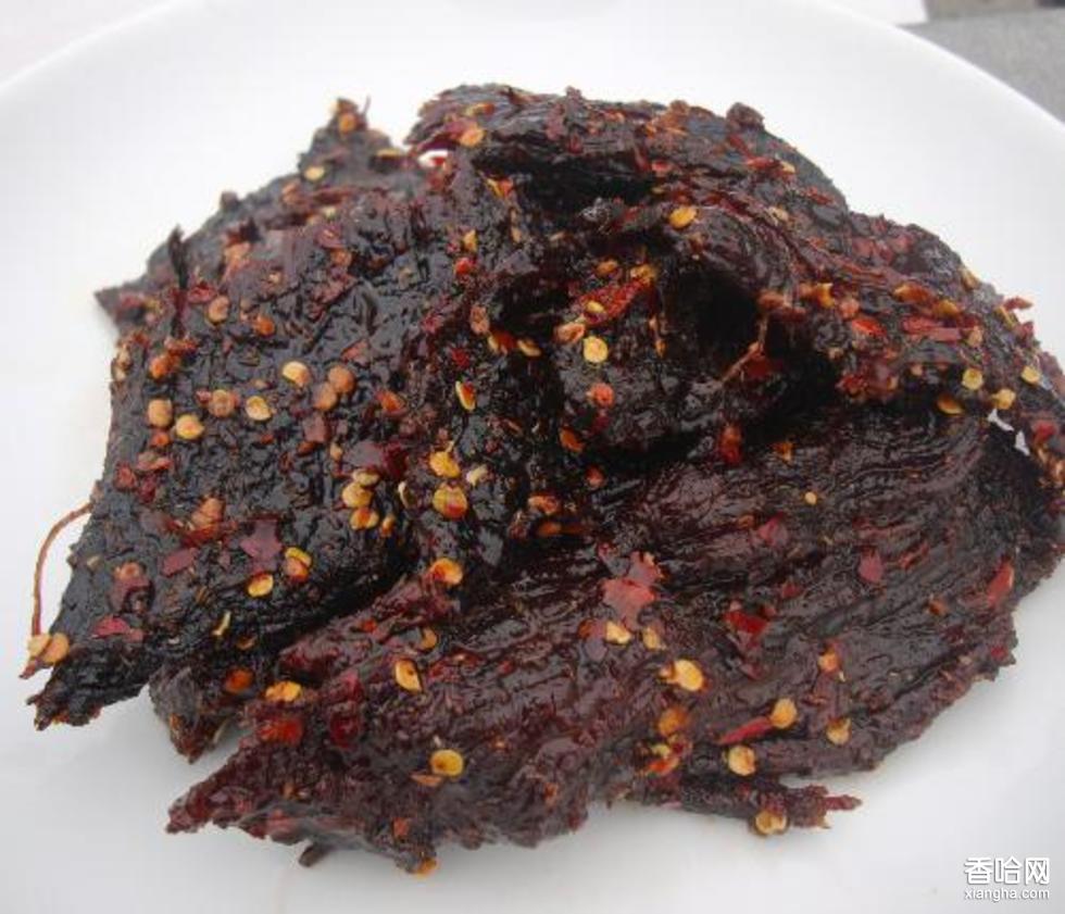 干巴牛肉是仁壽汪洋鎮(zhèn)的土特名產(chǎn),已有三百多年歷史,始創(chuàng)于清代乾隆年間,是清代宮廷貢品。它按照嚴(yán)格的標(biāo)準(zhǔn)選取的優(yōu)質(zhì)鮮牛肉經(jīng)過腌烤炒數(shù)道工序制作的麻辣牛肉干,油潤泛紅,條粒成型,食香化渣,麻辣爽口,南北風(fēng)味、老少適宜,具有芬香濃郁,純正醇厚,余味悠長之獨特風(fēng)格。實為居家,旅游,饋贈親友、休閑食用之佳品,被稱為巴蜀一絕,是四川省名優(yōu)特色產(chǎn)品。