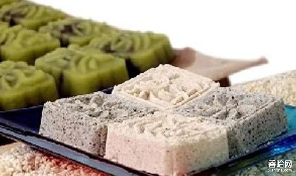6.、上盆、成型:每盆先取出糕粉0.1公斤作底粉,倒入粉盆底攤開;再取出糕心1.75公斤,均勻地倒入盆內(nèi)鋪平壓緊,然后再用糕粉0.15公斤作面粉,蓋在糕心上搟平-;最后用少許的豆粉撒面。靜置1小時后,就可以切塊成型,包裝為成品。tAy