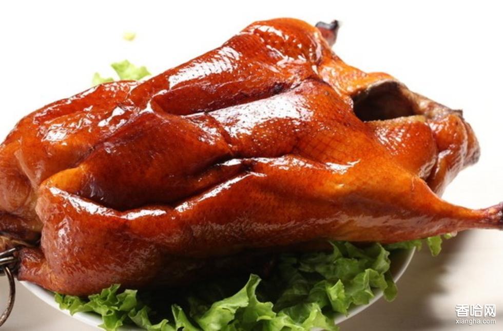 4.將鹵熟的鴨子撈起控干水分,放入熱油鍋中,炸至皮酥且呈棕紅色時撈出,刷上飴糖即成。