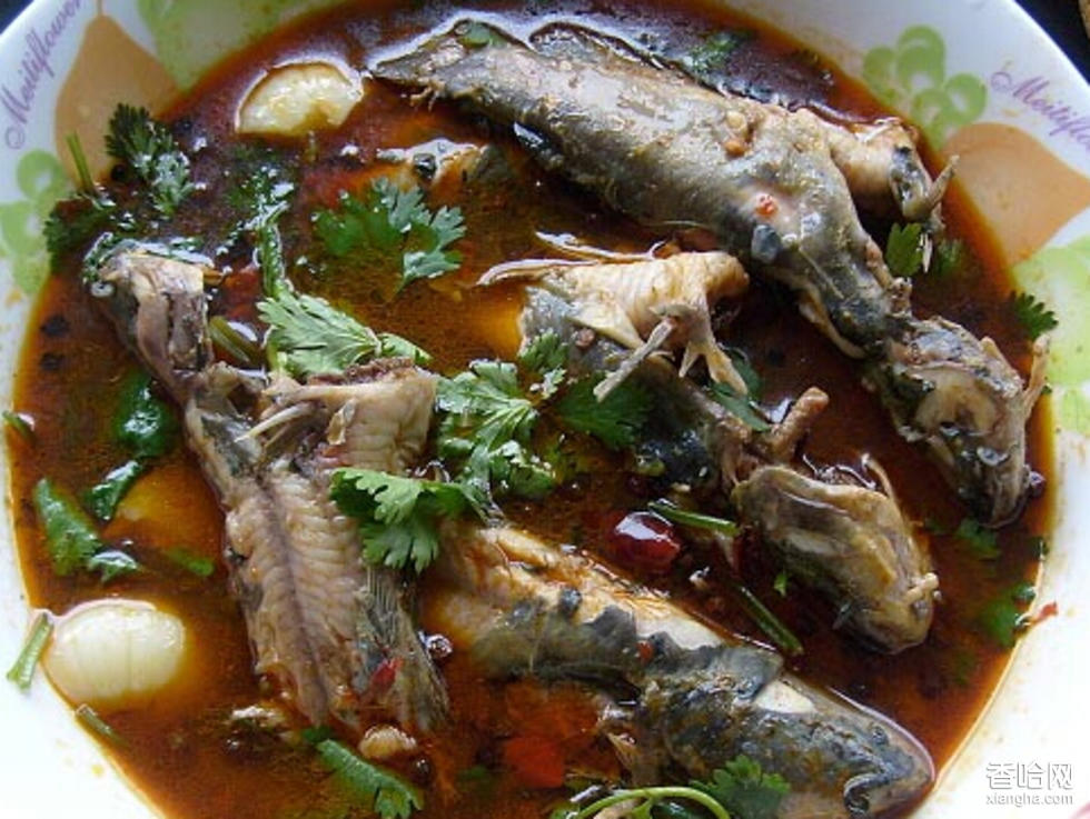 墨沖角角魚,在都勻地區(qū)以量多味美著名。取用本地水煮的魚味道特別香,再加上鹽蘸制法細膩和吃法講究,堪稱一絕。角角魚鱗呈烏青色,胸鰭邊緣硬,長大后變成角,故名角角魚。它生活在清澈見底的水中,最長25厘米,最大重半斤左右。小巧玲瓏,放到魚缸里可玩賞。角角魚,肉質(zhì)鮮美細嫩厚實,煮熟的魚分離下來的肉不含刺。