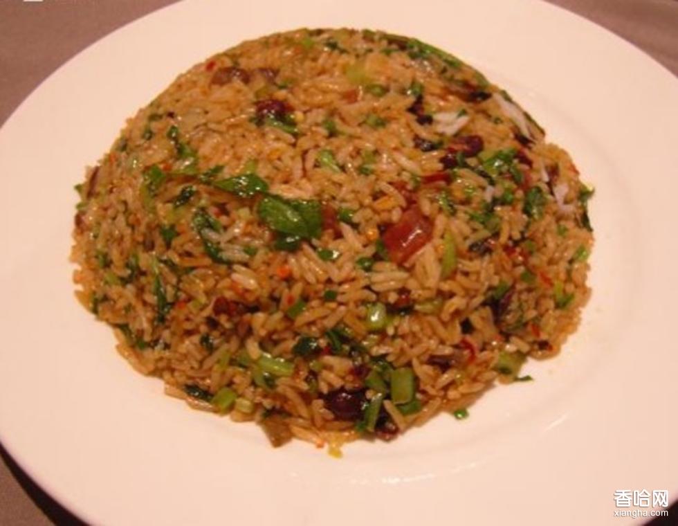炒飯的一種,源自貴州貴定。是普通人家的吃食,于今上得街頭,成了一種小吃,現(xiàn)在的大飯店里也有,自有其獨特之處,臘肉、蔥花、酸豇豆、泡白菜或者包菜切片,加醬油與腌制的辣椒等,炒起后,鮮亮誘人,香味四溢,一般用圓平鐵鍋放在店外,是貴州街頭最常見的小吃。