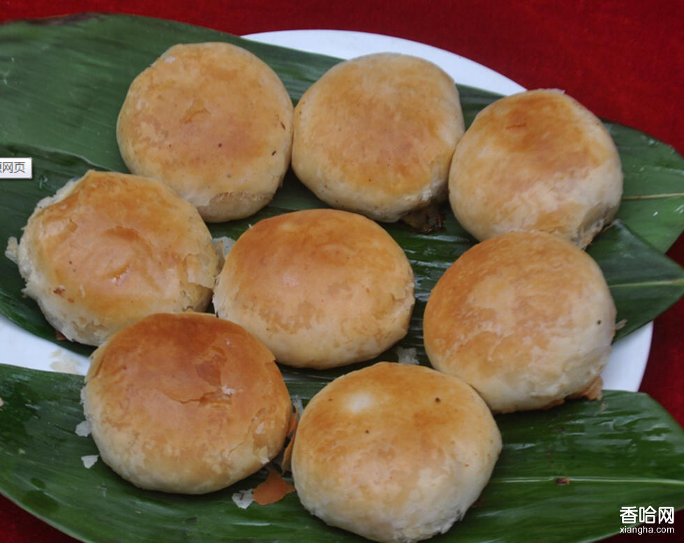 做法:1、揉面:先用面粉(l千克)與豬油(500克)和成酥面;再用面粉(1.5千克)、豬油(200克)、冷水(450窒升),分3次摻入揉成面皮。2、白糖入碗,加入火腿丁、豬油(100克),拌成糖腿餡。鮮肉煮熟切成小丁,加入鹽、醬油、蔥花拌成肉餡。3、成型:先將揉好的面皮攤平,把酥面放當(dāng)中包起來褂平、卷起用刀切成 50個小團,把每個小團用手按平,包上芯子(甜的包糖腿、洗沙、咸的包肉餡),再接平成餅狀。4、鍋上火,放入豬油(800克),待油溫達三成熱時,將餅下入油鍋中炸至皮酥、心透,撈出控油即成。