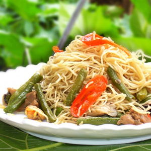 吃豇豆前要先把豇豆煮熟,豇豆有溶血素和毒蛋白,這兩種物質(zhì)是有毒的,煮熟才能破壞,生吃豇豆會引起嘔吐或腹瀉。下面為大家介紹豇豆燜面的做法~