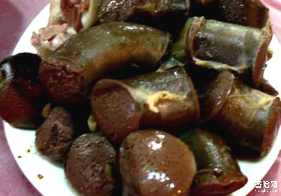 原料:豬小腸、豬血、大米飯、玉米粉、花生仁、鹽、油、五香粉等。