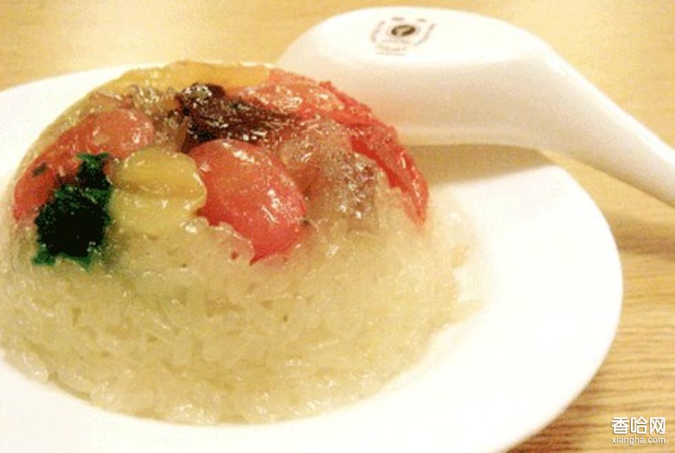 由優(yōu)質大糯米、豬油、白糖、豆沙、蓮米、果脯、葡萄干、桔丁、蜜棗等原料用水沖泡、晾干、蒸制而成,其味芬芳,飯質軟和,香甜可口。