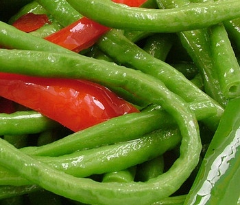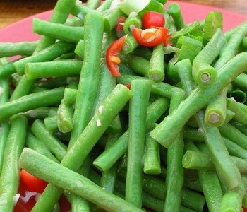 在沸水焯菜時(shí)在水中放滴油再放一小勺鹽,這樣可以使豆角更加翠綠更亮。在去除豆腥味時(shí)如果是炒的話,可以加一點(diǎn)糖或者料酒來(lái)去除豆腥味哦。將焯好后的豆角放在涼水中時(shí),如果這時(shí)有冰水更好,西餐中焯好的菜都要浸在冰水中,可以使豆角更脆更綠。
