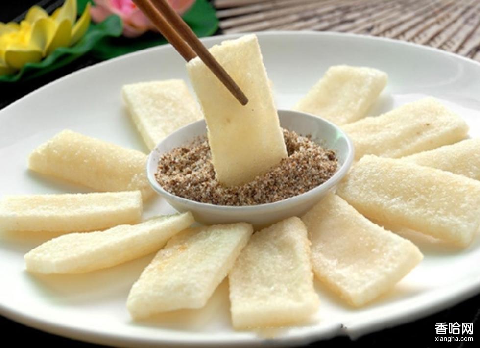 白糍粑,糍粑之一。此食品是逢年過(guò)節(jié)的特有食品。它是以上等糯米為原料,將糯米掏洗凈后浸透,放入蒸籠內(nèi),蒸至熟軟松化。撈出放入石舀內(nèi),兩人用木棒搗碎后上鍋蒸。將蒸熟的糯米飯搗爛成軟韌的糍粑,撈在盆內(nèi),趁熱分成小團(tuán),再將小團(tuán)捻扁成圓形,每個(gè)糍粑厚約一公分,直徑一般15至20公分?;榧抻玫?,則做到30至40公分,還要在白糍粑上剪貼“龍鳳呈祥”、“吉祥如意”等字樣。如將白糍粑放入堿水內(nèi),可保存數(shù)月,隨時(shí)可取出洗凈食用,湯煮、煎烤均可。此食品具有美味香甜、松軟爽口等特點(diǎn)。