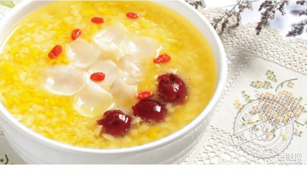 黃金粥并非含有黃金,是因?yàn)樗念伾珷N爛如黃金而得名。它的用料是玉米。制作要下一定的細(xì)功夫,攤主把購(gòu)回來(lái)的玉米,首先進(jìn)行篩選,去掉干癟、蟲(chóng)蛀的顆粒,然后磨碎成均勻的細(xì)粒,再篩掉粉末和揀出大粗粒。若留有粉末煮出的粥食就會(huì)變成糊狀,食客不屑一顧。大的粗粒不易煮透,顧客亦嫌棄。只有均勻的碎粒沸煮出的粥食不稀不糊,燦若金湯,爽口適胃,人見(jiàn)人愛(ài)。