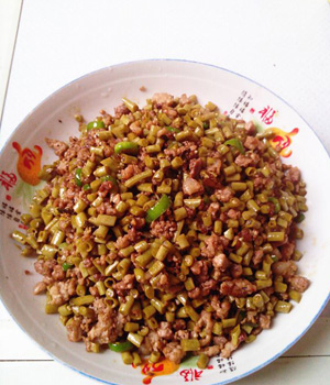 主料:泡豇豆250g、豬肉末250g