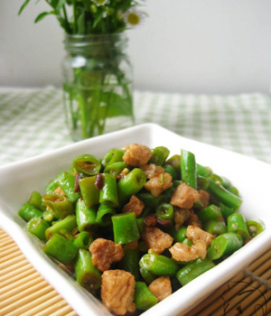 2、豆豉肉碎炒豇豆