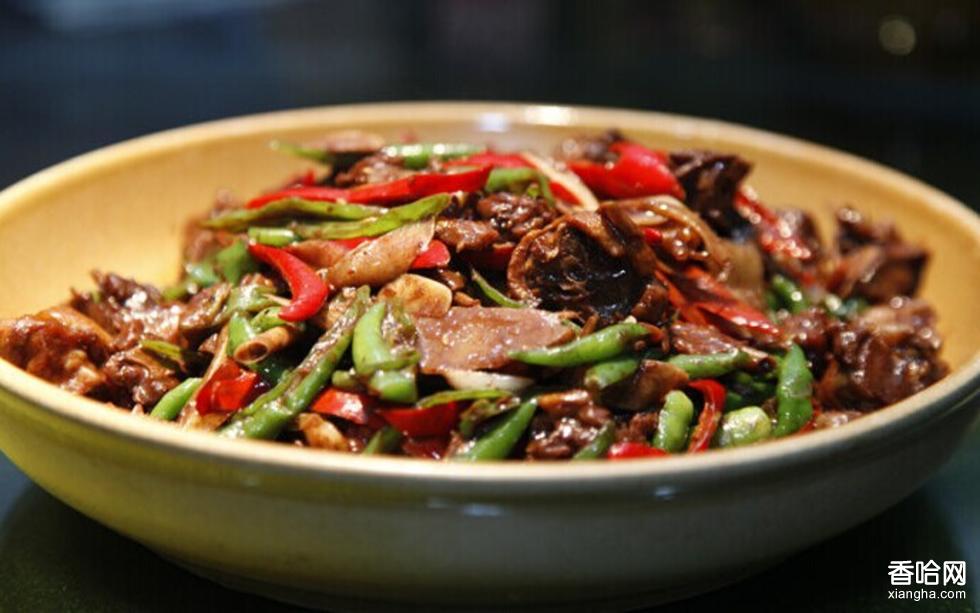 長沙百年老店李合盛以烹制牛肉菜聞名。其中紅燒牛蹄筋,燴牛腦髓和發(fā)絲百葉尤為出色,譽為“牛中三杰”。發(fā)絲百葉是三杰中的佼佼者。百葉,是牛肚內(nèi)壁中皺褶的部位,經(jīng)切絲急火爆炒,具有脆嫩、鮮香的獨特風(fēng)味。今李合盛老店雖已歇業(yè),但發(fā)絲百葉一菜則在長沙市各大餐館廣為流傳,以曲園酒家制作最佳。