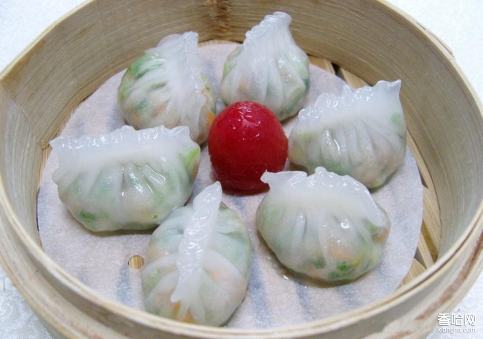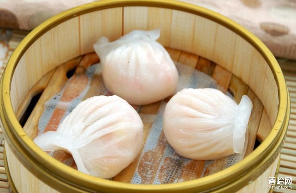 蝦餃,透明玲瓏,滑爽鮮美。是廣東茶樓、酒家的傳統(tǒng)美點。廣東人飲茶,少不了來一籠蝦餃。上乘的蝦餃,皮白如冰,薄如紙,半透明,肉餡隱約可見,吃起來爽滑清鮮,美味誘人。蝦餃最早出現(xiàn)在廣州郊外靠近河涌集市的茶居。那些地方盛產(chǎn)魚蝦,茶居師傅再配上豬肉、竹筍,制成肉餡。當(dāng)時蝦餃的外皮選用粘(大)米粉,皮質(zhì)較厚,但由于鮮蝦味美,很快流傳開來。城內(nèi)的茶居將蝦餃引進(jìn),經(jīng)過改良,成為廣州的名點,歷久不衰。