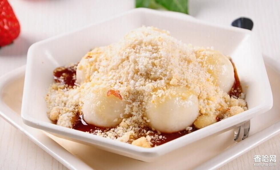 口感絕對是酥滑香甜、醒胃而不膩、味香四溢、老少咸宜。是湯圓的孿生兄弟,加姜汁特別祛寒正氣?!疤遣凰Α弊龇ê喴?,直接把糯米粉煮熟,挪搓成粉丸,在鐵鍋中用滾熱的糖漿煮熟,然后撒上碾碎的炒花生或切成絲的煎雞蛋伴食。