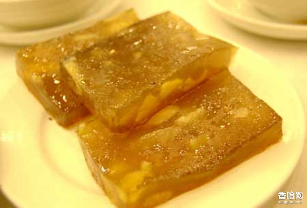 荸薺,粵語別稱馬蹄,故名。其色茶黃,呈半透明,可折而不裂,撅而不斷,軟、滑、爽、韌兼?zhèn)洌稑O香甜。此品以廣州市泮溪酒家的為最有名。因其所處的泮壙是盛產(chǎn)馬蹄的地方。所產(chǎn)的馬蹄粉,粉質(zhì)細(xì)膩,結(jié)晶體大,味道香甜,可以做成多種點心、小吃。以它做成的馬蹄糕,是泮溪酒家的傳統(tǒng)名食,四季皆宜。