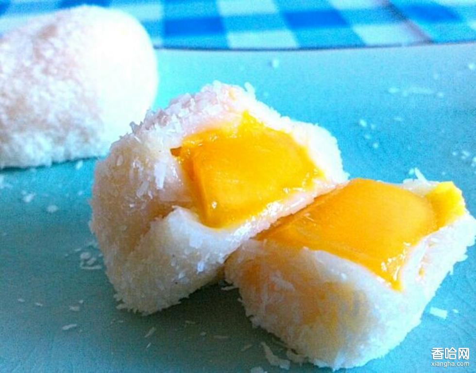 芒果糯米糍是一道特色甜點(diǎn)小吃,做法簡(jiǎn)單,口感軟糯,椰芒碰撞,奶香四溢。港式糕點(diǎn)的水果變形,摻雜了芒果餡的糯米糍,糯米和水果奇妙地譜成一支鋼琴與小提琴的二重奏。表皮沉穩(wěn)厚密,與唇舌膠著纏綿。內(nèi)里清新,汁液在齒間綻放,活力充沛。當(dāng)然大多時(shí)候,根本不容理性地分析,感性已經(jīng)迅速接替大腦獲得掌控權(quán),只記得充斥胸腹的香甜氣氛。