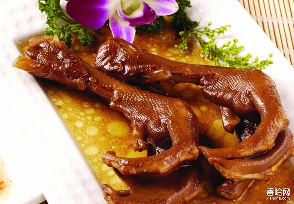 鹵水鵝掌以鹵水、丁香、大料、桂皮、甘草、陳皮、大茴、小茴、花椒、沙姜、羅漢果、玫瑰露等原料配制而成,無(wú)論味道和火候都恰到好處。存齒留香不著一物。 香味撲鼻,獨(dú)特的鹵香,濃烈醇厚。無(wú),一入口滑而不膩,是地道的廣東美食。