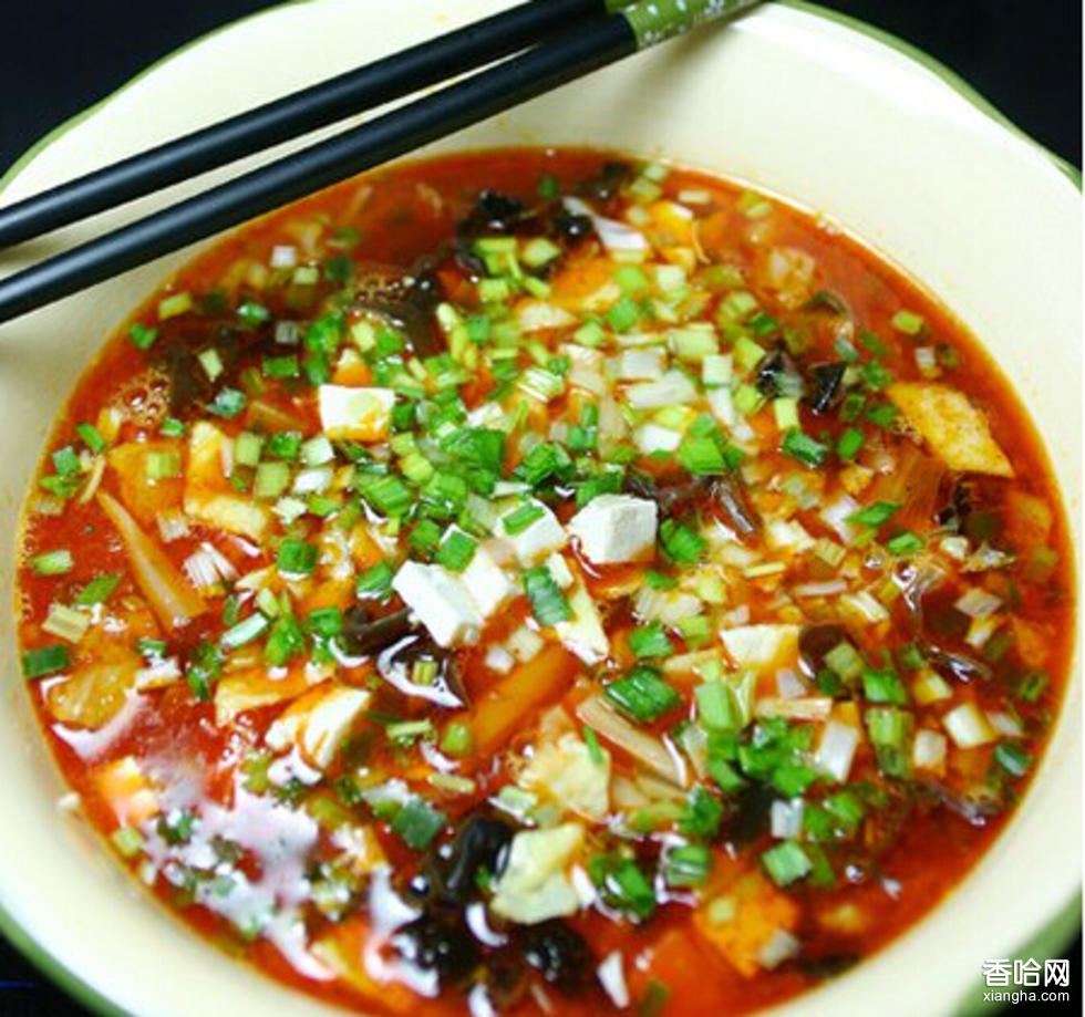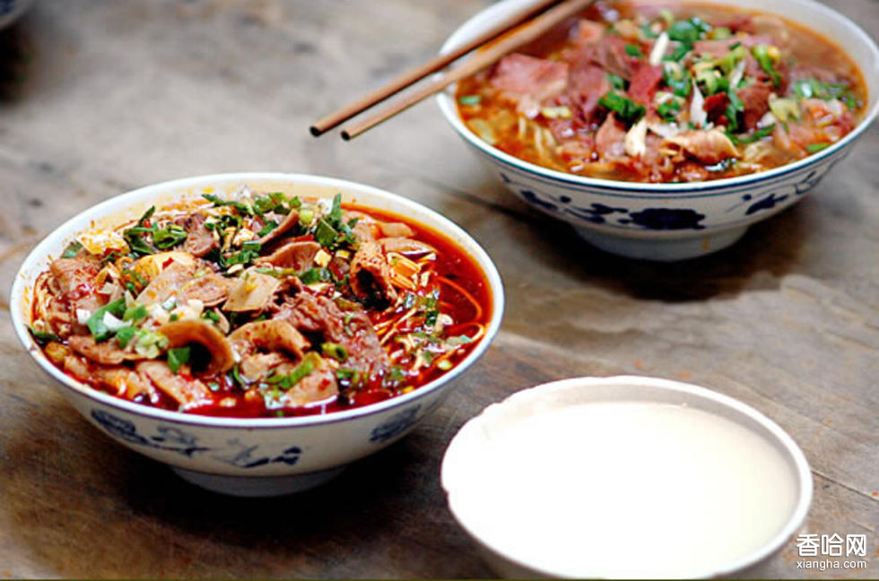 做法:把面煮至八成熟,放涼,面放在竹漏中,下墊綠豆芽,放進滾開的鍋中半分鐘,倒進大碗里,澆一勺牛油湯,再抓少許蔥花或芫荽,還有香菜。這面的好吃與否,關鍵在湯以及面的勁道。湯一般要用牛骨和牛肉熬制。選肉最好是黃牛肉或牛雜,而且一定要肥瘦搭配才能鮮美味兒足。再加許多種佐料;佐料關系到味道,各家自有高招,秘不示人。據(jù)說總共有二三十味的香料,比方說:大料、茴香、香葉、丁香、肉豆蔻、白扣、百果等等。其實具體怎么搭配還是看個人喜好和口味。最主要的還是兩味:辣椒,花椒。最先興起時有用大麻殼為料的,公安知道后嚴加打擊,多加中藥為料,根據(jù)氣候和身體狀況的不同調(diào)制保養(yǎng),而味道還是出奇地好。面以堿性為主,盤好的面總是金燦燦的。湯以麻辣為主,熬好的湯上面,總蓋著一層厚厚的紅油。輔以蔥花、大蒜,綠白點綴,真是色香味俱全。