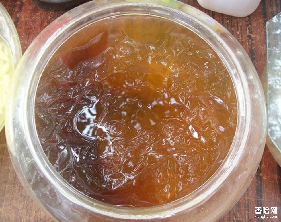 4、吃前可用紅糖或白糖根據(jù)個(gè)人口味制成糖水,然后根據(jù)個(gè)人喜好加入其中即可。冰粉由薜荔的成熟果,在水中搓出果漿,讓其形成半透明狀,或淺黃色的凝膠。夏天冷藏后,加紅糖水食用,實(shí)為消暑鎮(zhèn)渴的美妙冷飲。