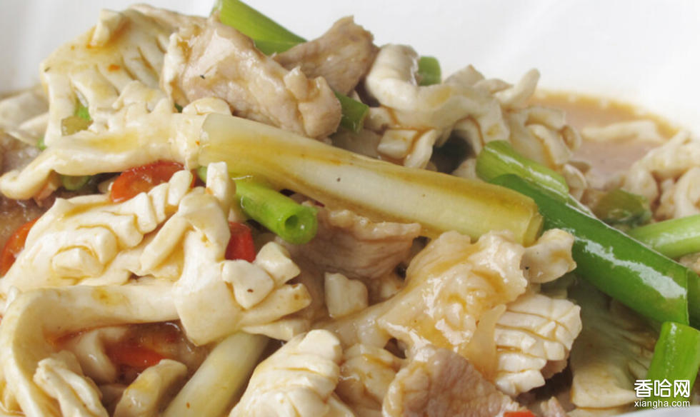 制法:1、準(zhǔn)備工作:羅漢筍切段,入開水氽過; 將魷魚剝?nèi)ブは磧?,用刀劃上網(wǎng)狀花刀,切條放碗內(nèi),加精鹽1.5克,濕淀粉10克抓勻。 雞胗洗凈,片去內(nèi)外筋皮,用刀劃上間隔1.5毫米的十字花刀,切條放另一碗內(nèi),加精鹽1克,濕淀粉5克抓勻。 清湯、紹酒、味精、精鹽、濕淀粉對成芡汁。2、烹調(diào):炒勺放旺火上,加白油,燒至八成熟時,把雞胗、魷魚下入油內(nèi),用鐵筷迅速撥散,倒入漏勺內(nèi);炒勺內(nèi)留油25克,放入蔥、姜、蒜末炸出香味,隨即倒入雞胗、魷魚及筍段和對好的芡汁,顛翻兩下,盛入盤內(nèi)即成。
