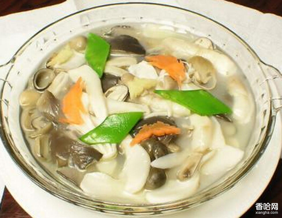 三鮮湯是江南地區(qū)漢族傳統(tǒng)名菜,其特點雞肉軟嫩,火腿味美,海參滑軟,營養(yǎng)價值高。主要做法將海參、魷魚、筍干切成絲煮再放入調(diào)料即可。軟嫩味美,爽滑適口,清湯色白,味美鮮香,富有營養(yǎng),是比較高檔的一種面食湯料。