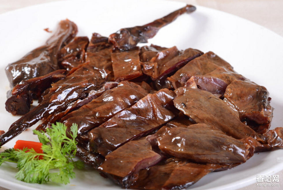 醬板鴨成品色澤深紅,皮肉酥香,醬香濃郁,滋味悠長,具有活血、順氣、健脾、養(yǎng)胃、美容之功效,是風靡大江南北的一種漢族風味名吃,是佐酒佳肴、送禮佳品。湖南仙都辣醬板鴨是湖南一絕名菜,是經(jīng)三十多種名貴中藥浸泡,10