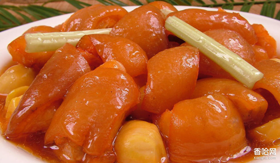 方法:南山豬腳制作方法相當(dāng)精細(xì),豬腳從市場上買回后,將其剁成小塊,每一塊約100克重,再放到鍋上放人精鹽、醬油、味精、黃酒、胡椒、香料、八角葵等佐料進(jìn)行鹵制,然后放人盛器中涼干水,食用時將其回鍋即可。
