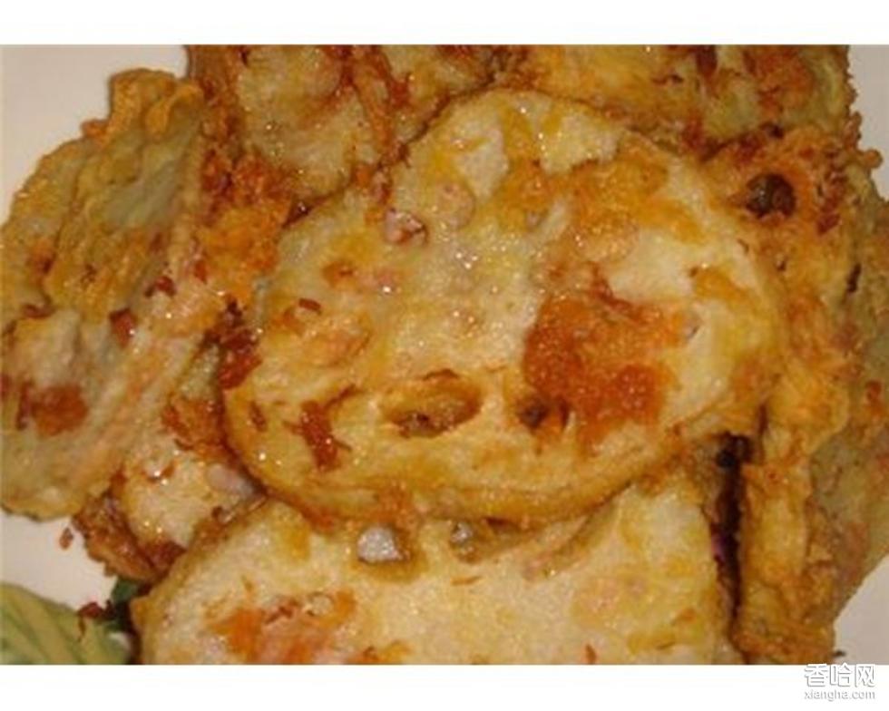 制作方法:1、將藕洗凈切成0.5厘米的片,取兩片中間夾入調(diào)好的肉末,面粉加調(diào)料調(diào)成糊。2、油溫?zé)?成熱,把夾好的原料掛糊,放入油鍋中炸至金黃色即可。