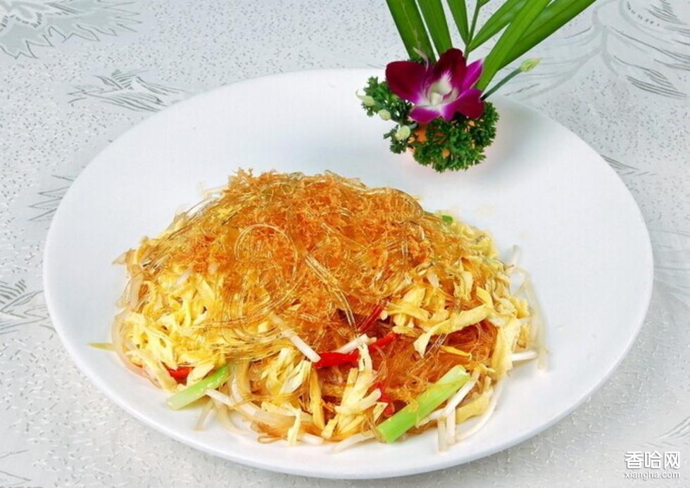 桂花炒瑤柱是廣東佛山的著名小吃,這道菜在原材料中加入豆芽、粉絲、雞蛋、火腿、瑤柱、鮮蚧肉等配料,色澤明朗、美味清香、爽口,有獨(dú)特風(fēng)味。桂花炒瑤柱這道菜的賣相非常吸引人,金黃與晶瑩剔透相間,炒散的雞蛋猶如朵朵桂花掉落在餐盤上,令人眼前一亮,濃郁的香味隨之撲鼻而來。
