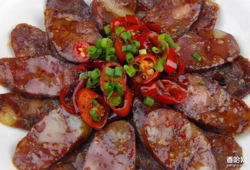 經過刮腸、剁肉、拌餡、灌腸、晾曬、蒸煮等工序,精制而成,風味獨特。