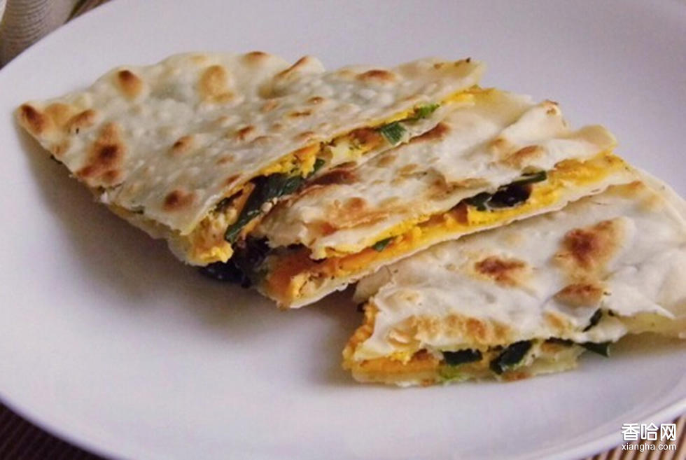 做法:1、和餡:餡料和調料拌勻備用。2、和面:面合成餃子皮的軟硬度即可,用搟面杖搟成圓形小餅,越薄越好,大小比普通盤子小一圈。3、烙餅:張面皮墊底,上面鋪上和好的餡,邊緣留白一厘米左右,上面蓋上另外一張面皮,四周捏緊,放入平底鍋中小火烙(不用放油),蓋上蓋,烙一分鐘左右翻面,在烙另外一面,烙到兩面都有黃點點就可以了。如果要是想加雞蛋的話,就把一張面皮先放在鍋里,鋪上餡料,直接把雞蛋打進去,放一點鹽,等雞蛋稍微凝固,再把另外一張面皮鋪上去,用個勺子、鏟子什么的把面皮周邊壓上,翻面,兩面烙熟就行了。