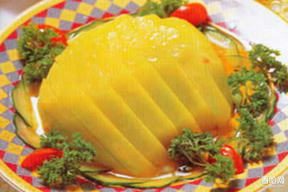 臨沂郯城有“天下銀杏第一縣”之美譽(yù),所產(chǎn)銀杏果實(shí)碩大,質(zhì)量?jī)?yōu)佳。雪蛤乃東北林蛙又稱“蛤士蟆”,其雌蛙輸卵管的干制品為珍貴醫(yī)療滋補(bǔ)品,自古為烹調(diào)的名貴原料。臨沂廚師將銀杏與雪蛤這兩種具有高效食療價(jià)值的原料合烹已有多年歷史。此菜口味極佳,滋潤(rùn)甘甜,營(yíng)養(yǎng)豐富。臨沂星級(jí)飯店可品嘗得到,通常百元左右一道。