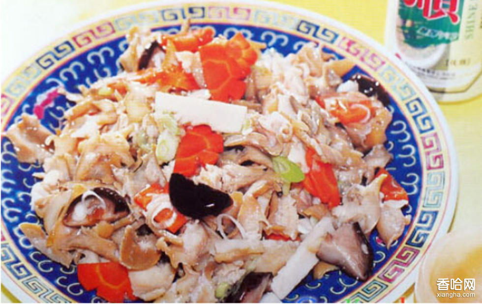 泡炒香螺片,漢族名菜,屬魯菜系。刀工嚴(yán)謹(jǐn),火候考究,質(zhì)地脆嫩清爽。此道菜獲得1993年第三屆全國(guó)烹飪大賽金牌獎(jiǎng)。