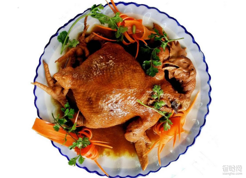 始創(chuàng)于元。夏津曾為“元駙馬都尉武毅王湯沐邑①”(見清乾隆本《夏津縣志·疆域志·沿革》)。王名孛要合,尚太祖成吉思汗女阿刺海別吉(見《二十五史·元史一0九·諸公主表》)。公主賢慧聰穎,除佐王府政事,夙重丈夫飲食起居,備極周洽,凡王餐必重攝生②?!跋慕驗槲湟阃鯗逡胤侵挂皇?,王之孫曰忽都納,再傳曰干朵忽都,再傳曰沈溫祥?!保ㄒ娒駠尽断慕蚩h志·疆域志·沿革》)。王孫忽都納襲位,頗有乃祖之風,尤重攝生之道,其與營養(yǎng)大師忽思慧③過從甚密。是以,思慧常隨來夏津陪侍,文翰琴棋之外,共論飲膳攝生。一日,見王府所豢報曉雞,毛羽似火,尾翎紛披,頷首稱羨。乃謂王言:“此物味甘平,微溫無毒,補中安五臟,最宜攝生”。王驚喜不已,即命宰烹。廚夫禿哈(又作圖哈)為祖?zhèn)魇缽N,久侍王府,主司廚饌,藝技精巧,乃揮刃而就。思慧又命輔以菇、筍、木耳、精肉諸料,共雞入鼎而烹。比及食后,王顏大悅,言:“殊美,唯多骨耳”。翌日,禿哈即剔骨而烹。食竟,王言:“益美。第雞與輔料相雜,味混渾不清”,思慧茫然扼腕。禿哈遂言:“此易耳。去臟而不剖,內(nèi)剔骨可也。”乃于頸側(cè)入手,除臟剔骨,而成袋囊。中充輔料,勢若完雞,即和羹而飪。入盤飾以青紅菜蔬,整雞若伏錦簇中。王朵頤大快,頰齒俱馨。食后咂舌吮唇,豎擘極譽:“外味嫩鮮,中餡豐華。妙品哉!”即題詩云:赭光燦燦如熔金,百珍中囊事事馨。天錫鄃城飛火鳳,巧烹細饌味彌真。遂命搜購民間“丹牡雞(紅雄雞)”,“日輒如法烹食”。嗣后,又改用牝雞(母雞),味尤肥美。年湮日久,此饌遂成王府佳肴之首。制作亦愈趨精純,乃至主料選用當年生斤半至二斤牡、牝雞。輔料又增填海米、海參、干貝等,其鮮嫩飫美,倍徙厥初。因主料為夏津土產(chǎn)雞,故又得名“鄃飴珍味雞”。 后饌制④之方傳入宮廷,列入御膳,每當麥秋之季則征調(diào)“鄃地土雞”,夏津則應時購取,奉發(fā)帝京。凡節(jié)日慶典,朝廷即以“鄃飴珍味雞”分賜王公大臣、皇親國戚,獲者皆以為榮。因之,諸王公卿多有效法,雖其技巧參差不侔⑤,味亦優(yōu)劣有差,然終為各府第宴筵所必備。 清乾隆間夏津知縣方學成,夙嗜此味,每命邑之名廚為飪。時方母隨任,方知縣為人至孝,每以此饌奉母??h丞、教諭、典史等屬寮亦多效仿,各以布袋雞奉敬父母。方知縣卸任歸里,宴客必為饌制。食者稱賞,其則意為不佳,嘗于筆記《日廩饌玉》中稱:“饌制雖美,然猶不及鄃味”。 因制作工藝嚴謹,用料精純,故民間烹制絕少,飯莊酒肆亦饌飪幾稀。僅據(jù)《夏津魏氏族譜·序》載“十二世魏公從德為邑中名廚,饌制‘鄃飴珍味雞’名揚遐邇。嘗營店肆于濟南、石家莊等地,名‘鴻熙居’。凡官商華筵莫不首推,縉紳大賈多所訂取,皆備極褒美”。按其“譜系”推之,魏從德當為清乾隆初人。迄于民國傳之于張浩,為第八代傳人,繼傳紀尚忠,復傳魏憲華,已是第十代傳人。 斗轉(zhuǎn)星移,璞玉成璋。方今“布袋雞”名揚遐邇,身位陡增,日漸光大輝煌。德州鴻熙居布袋雞有限公司,系夏津布袋雞饌藝第十代傳人、德州布袋雞美食文化研究會長魏憲華創(chuàng)辦。其以“傳統(tǒng)為源,踵事增華。質(zhì)量為本,科學發(fā)展”為理念,深入發(fā)掘傳統(tǒng)工藝,利用現(xiàn)代科技研究分析營養(yǎng)成分配比。力求風味以適眾口,務(wù)使產(chǎn)品尤利補益,以期食者攝生,而臻延年。 注: ①湯沐邑:古時供諸侯、大臣朝見天子前,住宿、齋戒、沐浴的地方。后來用做皇帝、皇后、公主等收取賦稅的私邑,也叫湯沐邑。 ②攝生:保養(yǎng)身體。 ③忽思慧:又作和斯輝。元代蒙古族營養(yǎng)學家、醫(yī)學家。元仁宗延佑年間(1314-1320)任飲膳太醫(yī),主管宮廷飲食、藥湯補益事項。曾撰有營養(yǎng)學專著--《飲膳正要》。 ④饌制:烹炒菜肴。 ⑤侔:mou,等,齊。 夏津縣文牘研究會基本簡介 布袋雞簡介