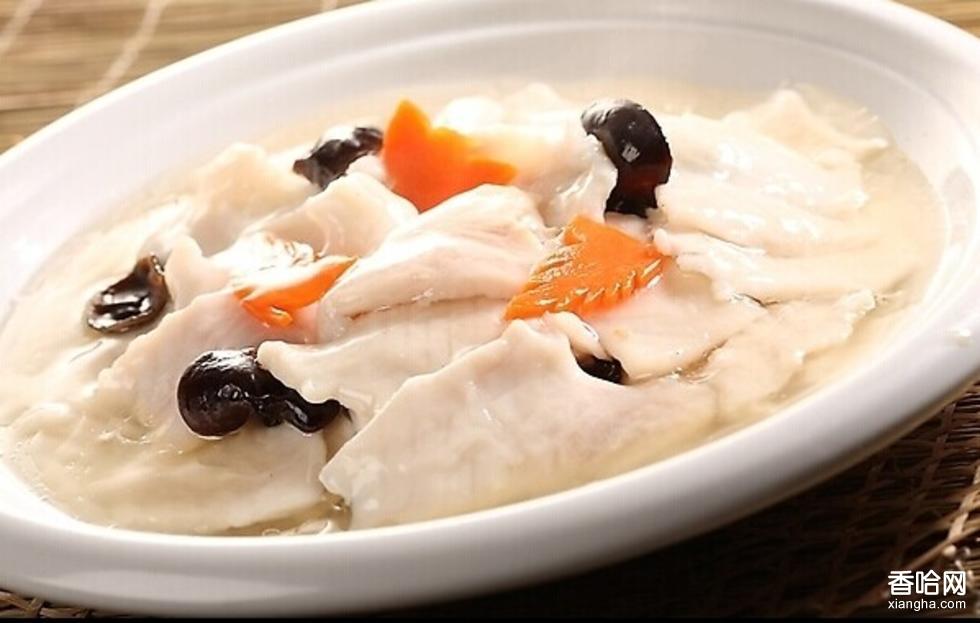 1、鱸魚宰殺洗凈,去頭、去龍骨、去魚皮、去肚膛,斜片成約5mm厚的片;