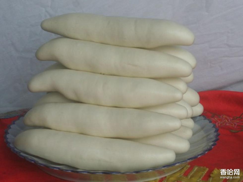 其選用優(yōu)等小麥磨成“78”面粉當基本原料,將“肥頭”(酵面)加入適量堿面(0.5公斤“肥頭”加1克堿面)后,和以“嫩面”,在案板上揉勻,用特制木杠反復擠壓,然后切段手搓成形,兩頭尖,中間粗,插入帶竹簽的蒸籠,上鍋急火20分鐘蒸熟,即可出籠食用,其個體形狀獨特:長20厘米左右,頂端尖細,中間圓而粗(直徑3.5厘米左右),底端較頂端稍平鈍,略呈紡錘形。色白潤如玉,油光有微亮。