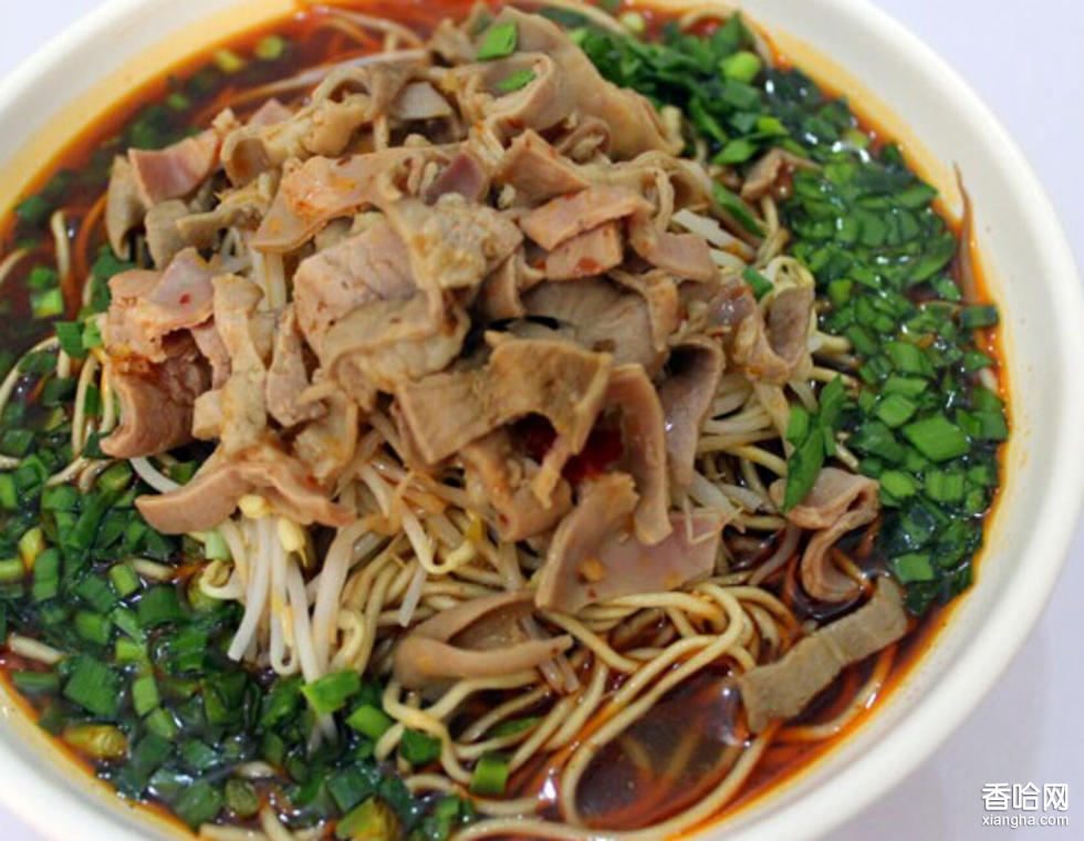 一般以牛羊肉為原料,配以辣椒、茴香、胡椒、花椒、八角、桂皮等20多種作料炒制而成。其做法是:精選肥瘦適中的嫩牛羊肉,切成葡萄大小的方丁;將干紅辣椒入油中炸至焦黃,色味被收入油中時,撈出控油、晾脆,以刀拍碎備用;將切好之肉丁入油,反復(fù)煸炒,至肉塊定形后,將拍過的辣椒及精鹽等調(diào)味品適時放入,以文火煎掉肉中水分,待肉丁著色均勻呈棗紅色時,離火降溫。成品臊子精在工藝,巧在火候,香而不膩、辣而不辛、咸而不澀,色如瑪瑙,晶瑩悅目,味道鮮美。其面條制作取自當(dāng)?shù)厥a(chǎn)的優(yōu)質(zhì)小麥精粉,按比例用食鹽、水加以攪拌,和成面團(tuán),反復(fù)揉搓,至筋道,再經(jīng)過反復(fù)揉條摔板,直至其觸摸如絲綢、手扯有拉力、提起似瀑布、板時噼啪作響即可。這樣的面條寬窄有致、均勻好看,二兩面,三根條,板拉扯直后可達(dá)四丈有余。板后面條即入鍋、起碗,放幾根青菜,澆上臊子,真?zhèn)€是白面條、綠菜葉、紅臊子,入口來“辣酥酥,香噴噴”,清香沁人心脾,令人回味無窮。