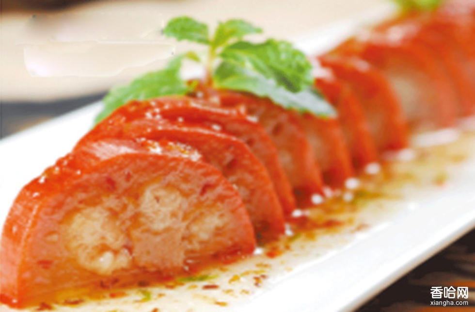 蜜汁江米藕原名熟灌藕,是一道歷史悠久的漢族傳統(tǒng)甜點,屬于豫菜系。據(jù)傳熟灌藕始于元代,后經(jīng)歷代廚師不斷改進(jìn),成為“蜜汁江米藕”。此菜選用豫西南社旗縣唐莊白蓮藕,經(jīng)煮、釀、蒸、蜜炙而成,成菜軟糯香甜,為筵席名饌。唐莊的白蓮藕個大節(jié)長,皮薄肉細(xì),晶瑩如玉,甘美可口。一般的藕切開后都有許多細(xì)絲相連,牽扯不斷,故有“藕斷絲連”的成語,而唐莊白蓮藕卻切削刮剁都不見一絲,為藕中奇品。清代曾列為貢品,是不可多得的烹飪原料。