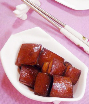 【油炸】經(jīng)過(guò)油炸的五花肉,可以將多余的油脂逼出來(lái),又能固定肉的外形和鎖住肉汁,增加了肉的香味,但要避免炸過(guò)頭,吃起來(lái)口感變差。