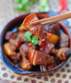 【加入瘦肉一起燉煮】在做五花肉的時(shí)候添加一些去皮瘦肉,可以起到吸收部分油脂的作用。